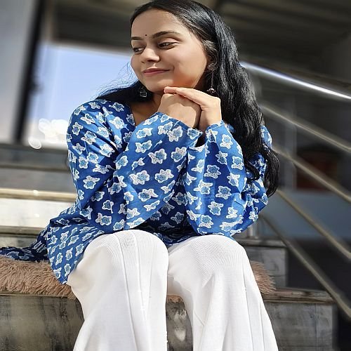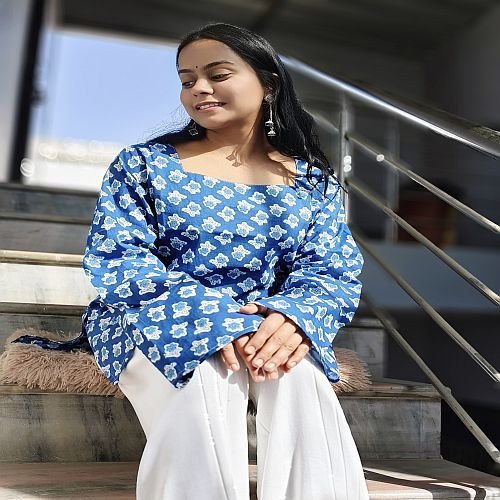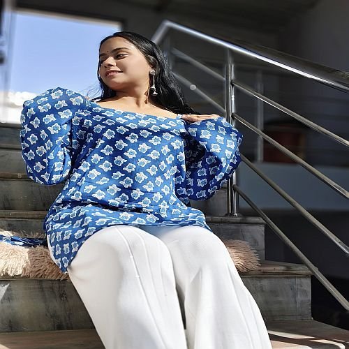 Home › Products › Ladies Short Kurti › Blue Cotton Printed Short Kurti