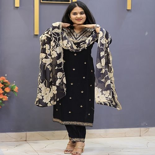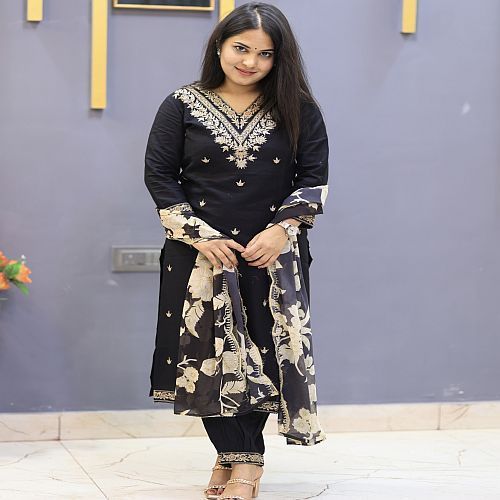 Home › Products › Ladies Printed Salwar Suit › Ladies Cotton Black Floral Print Salwar Suit