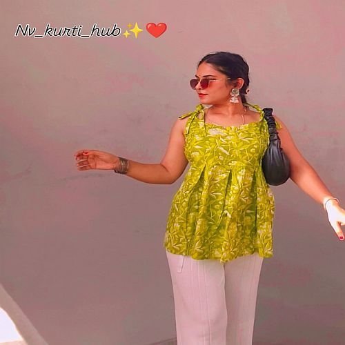 Home › Products › Ladies Short Kurti › Ladies Green Sleeveless Cotton Printed Short Kurti