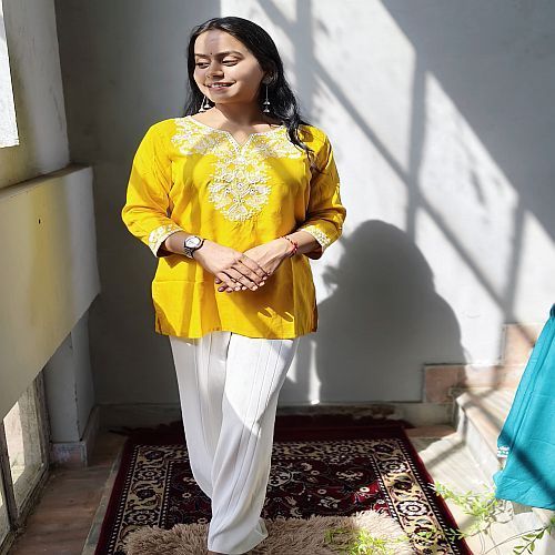 Home › Products › Ladies Short Kurti › Ladies Yellow Embroidered Rayon Short Kurti