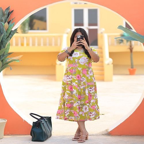 Home › Products › Ladies Long Kurti › Ladies Yellow Printed Long Rayon Kurti