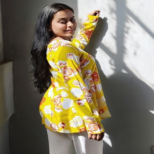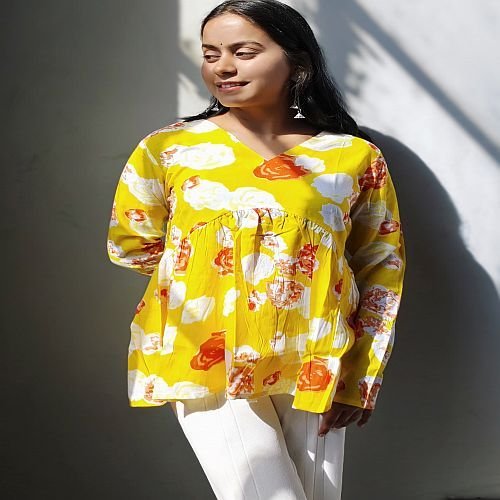 Home › Products › Ladies Short Kurti › Yellow Cotton Printed Short Kurti